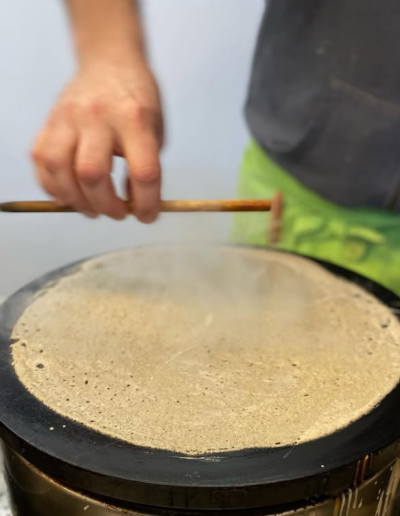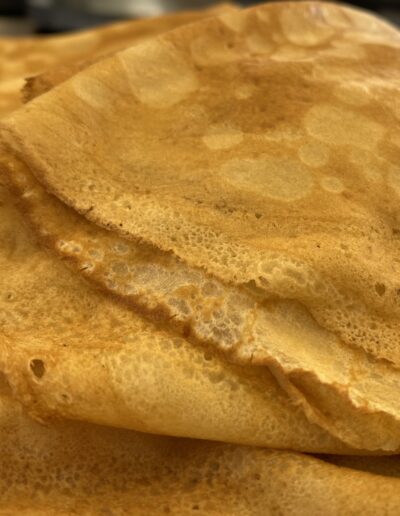 Nos crêpes sont préparées quotidiennement pour vous garantir une fraîcheur inégalée. Sans conservateurs ni additifs inutiles, elles conservent toute leur saveur et leur moelleux.